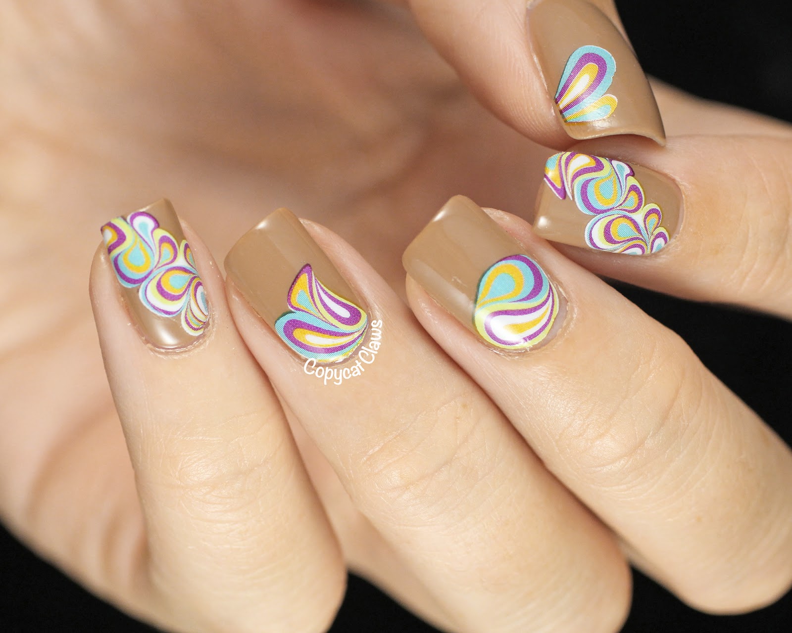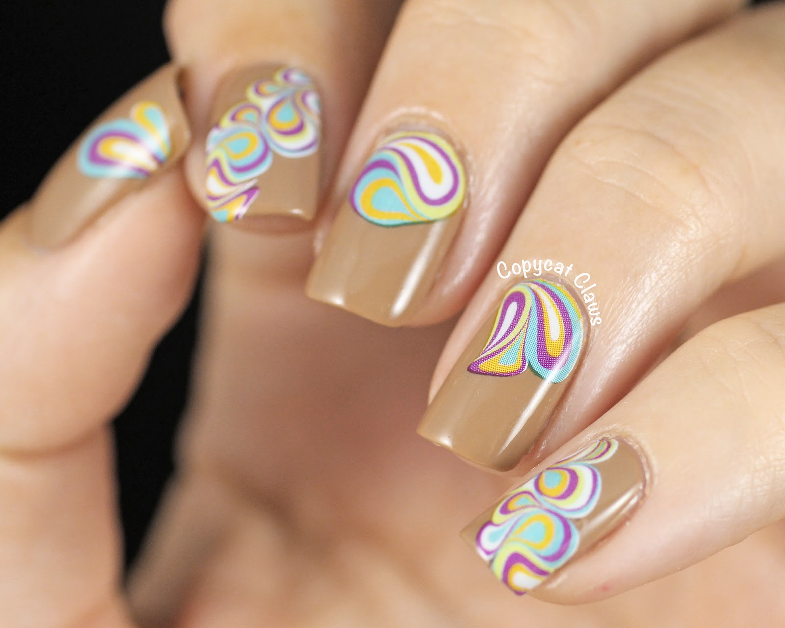 The other decals I used are the artistic vortex decals (item 15193). I wanted to go with a retro feel here as well so I put them over a darker beige (Zoya Flynn) but in hindsight I wish I had put them over white. Luckily I have a few left so I'll be trying that in the future.