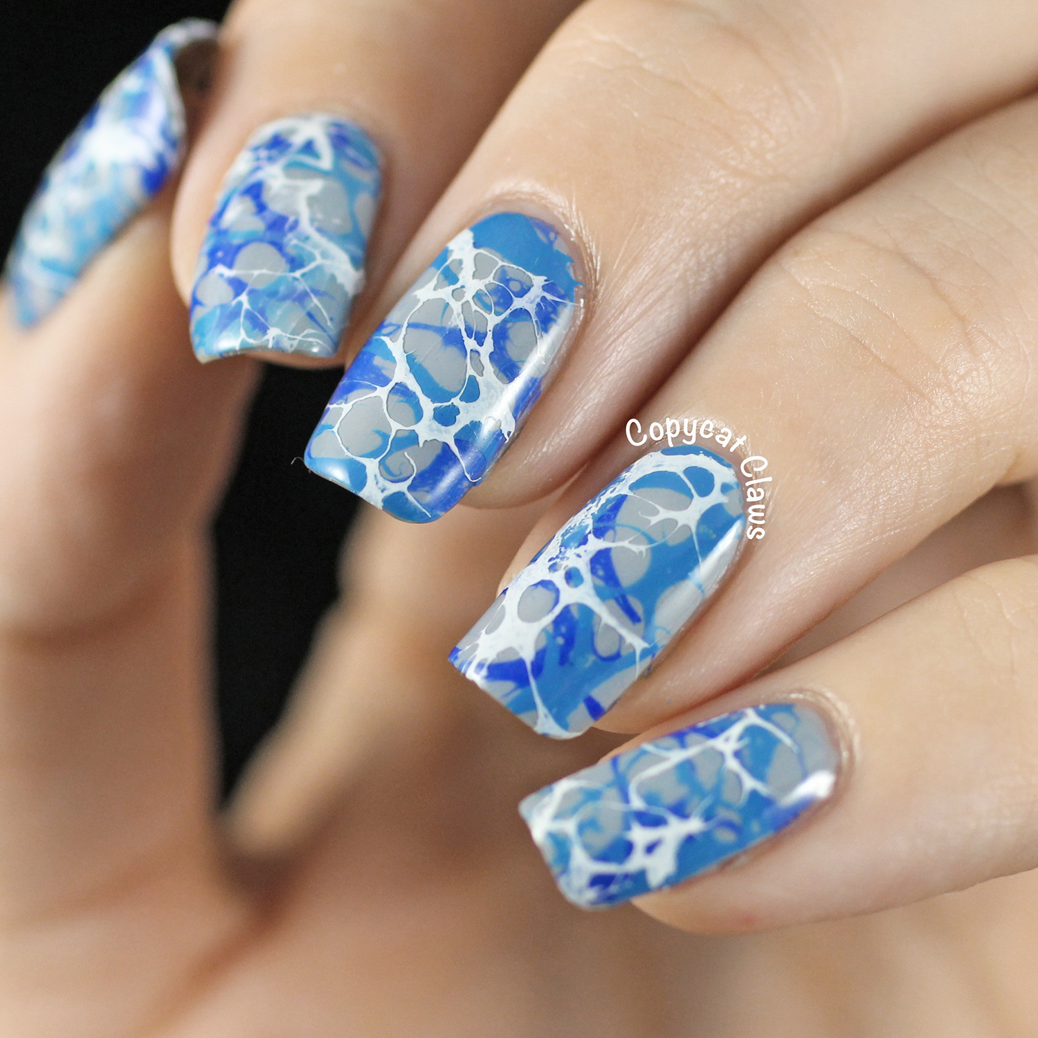 I wore them with just the blue for a day then I decided to see how it looked with white as well. So I did another round of water spotting with Pure Ice Superstar! It gives it a pretty different look, in my opinion...more like angry water.