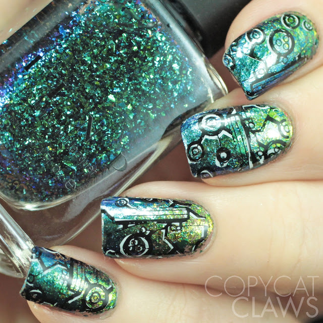 The Digit-al Dozen does Futuristic/Nail Crazies Unite do Stamping Over Flakie Polish