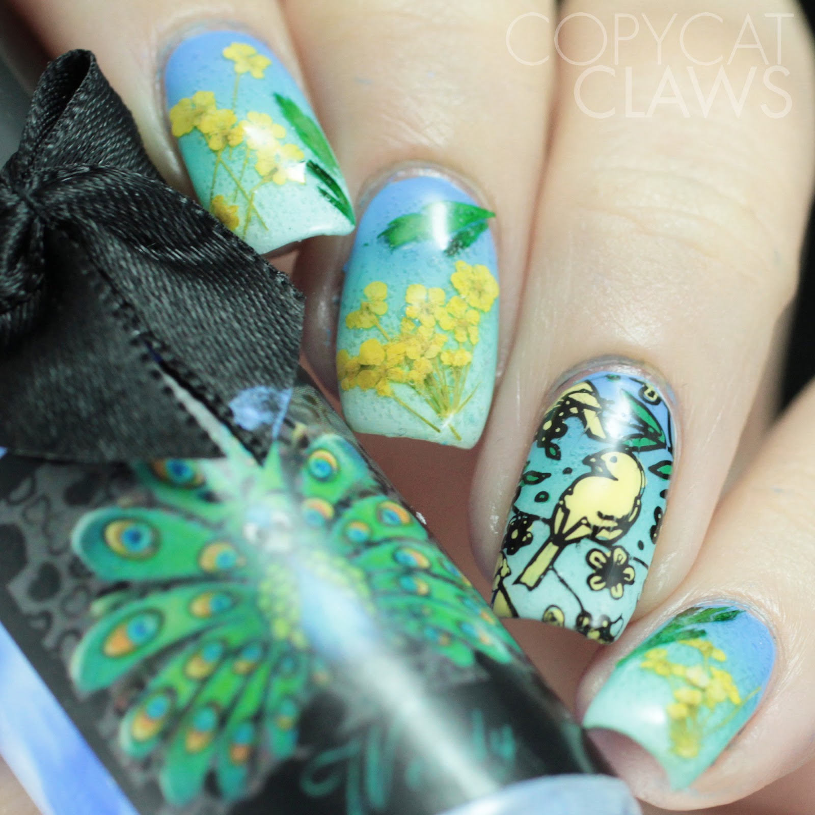 The MoYou London plate was Mother Nature 18. I combined it with some dried flowers that were also in the box for my next mani.