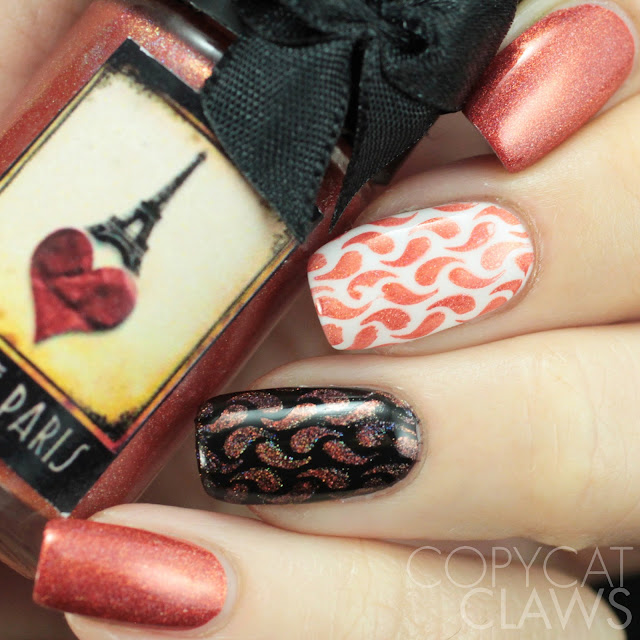 Hey there! I hope everyone is having a great day! I'm back today with more polishes available from Beautometry. I use my Esmaltes da Kelly Animals creme polishes a lot for nail art but she doesn't only make cremes. She makes beautiful holos as well. Today I'm sharing the I Love Paris collection. I'm unsure if these were designed to be stamping polish but, since they're so opaque, they work great for stamping. Hopefully my swatches give you an idea of how they look on their own (as regular polish) and as stamping polish.