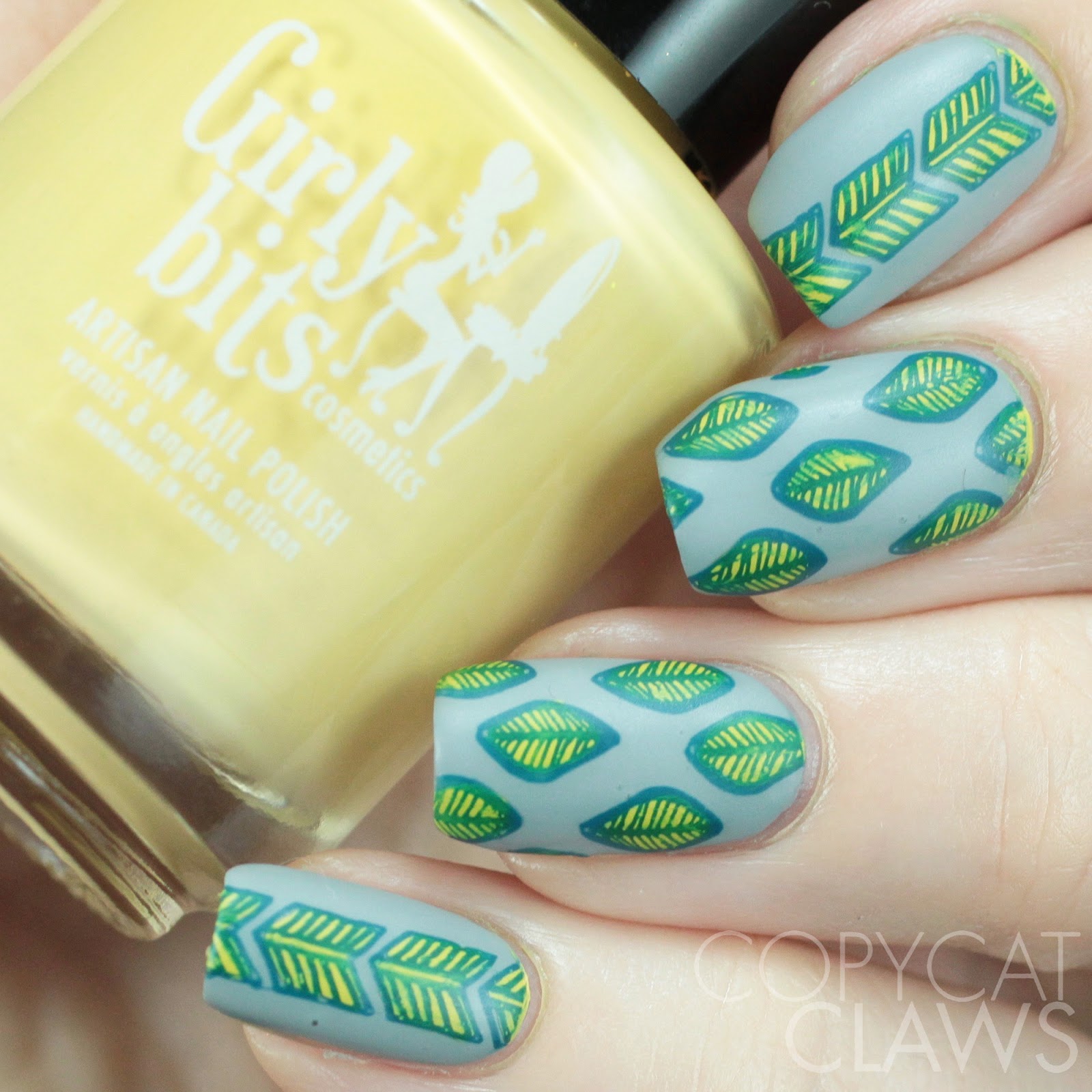 For my last mani I did try to go with a Scandinavian color theme (thank you google) but I think I missed the mark. I loved it but it should be more dusty. Here I did reverse stamping with Girly Bits Sea You Next Fall filled with Saffron, Saffroff over Hit and Mist. Again, I finished with a matte top coat.