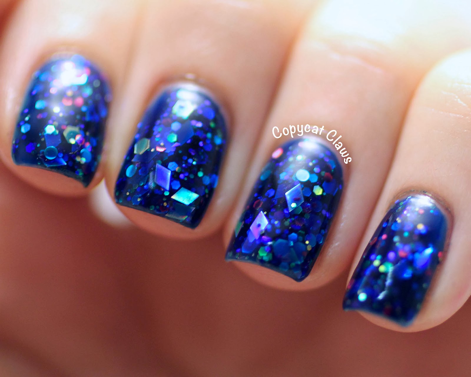 Hey there! Today I have a quick swatch to show you of an amazing glitterbomb, Emily de Molly Turbulence. Emily de Molly is an Australian-made indie brand known for it's amazing glitter suspensions (hello, have you seen the Forces trio?!) and Turbulence is no exception. It's a blue jelly filled with glitters of all shape and sizes. Diamonds, circles, hexes...oh my! I think the diamond-shaped glitter is so cool! I've never seen another polish with diamond glitter.