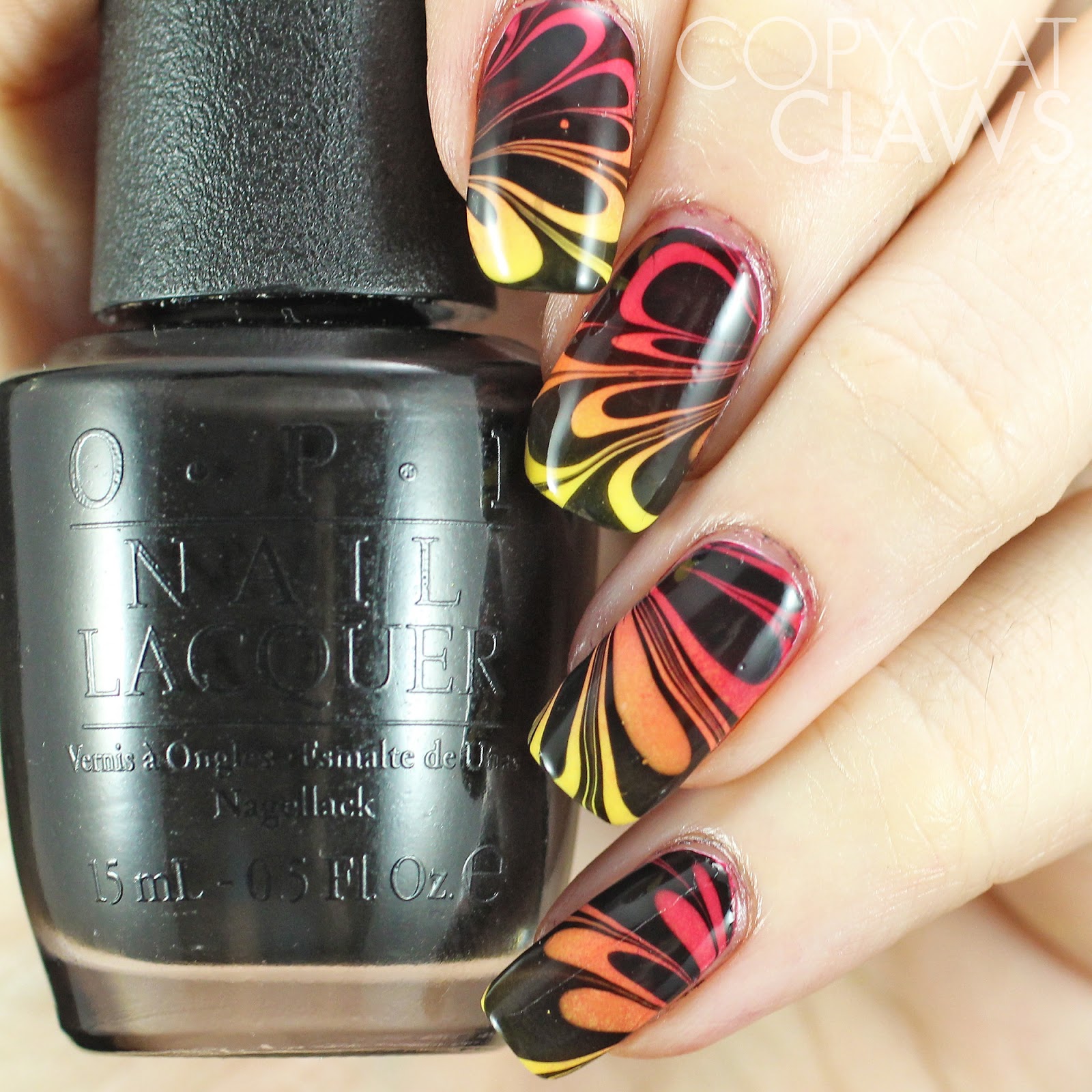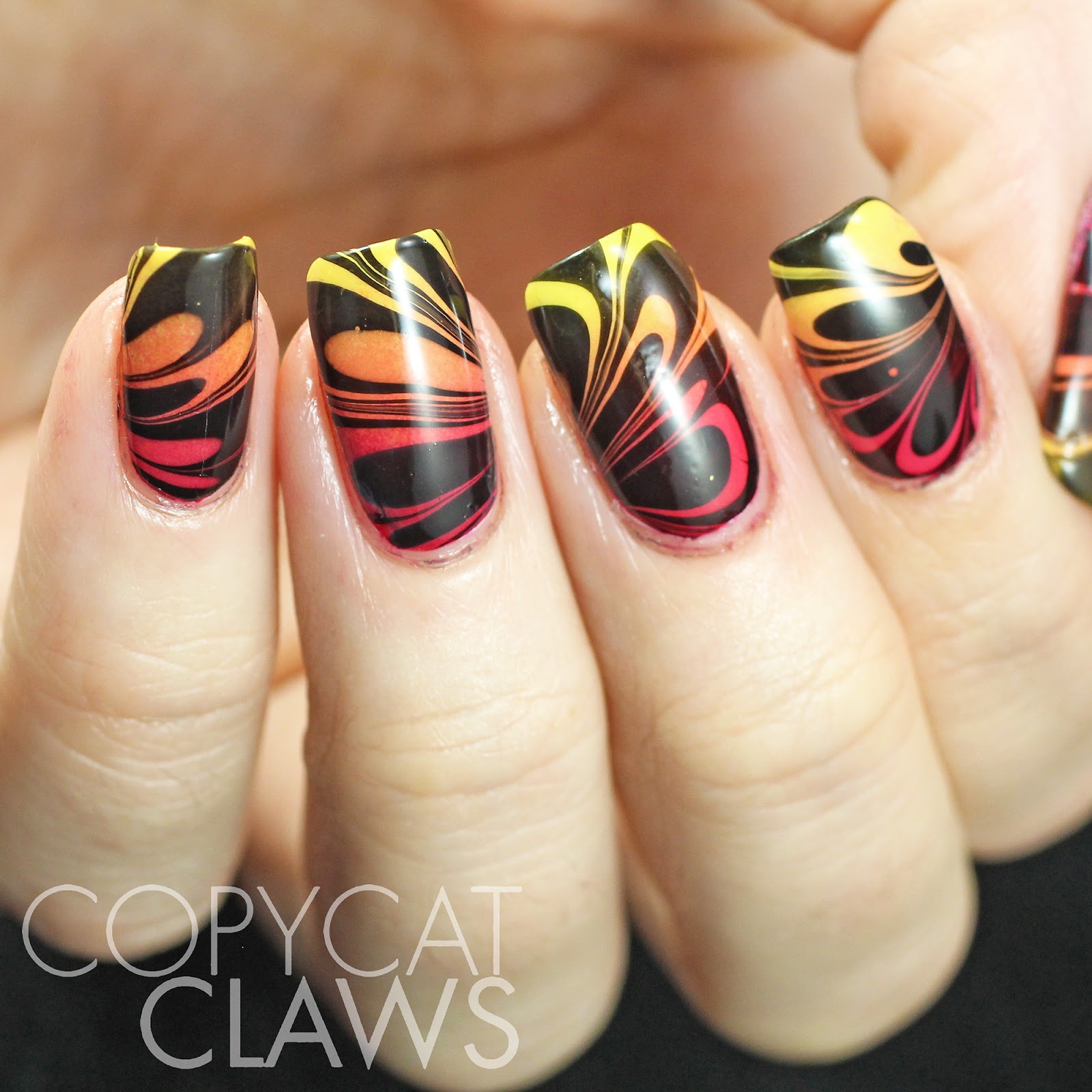 Hey there! I did a water marble...and it worked! A couple of weeks ago I was chilling at the cabin all alone and I had brought the new Color Club Poptastic collection with me so I decided to give water marbling another shot and I'm so glad I did. I've never been so proud of a water marble as I was of these ones when I did them. Or I should say I was proud of this hand. The other one looked like a toddler had scribbled on me, haha! Luckily this is the hand you get to see...