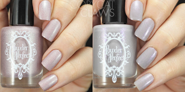 Hey there! Today I have swatches of two gorgeous Powder Perfect polishes that were created exclusively for Color4Nails. Both are colors that are more subdued than I usually wear. They are so sophisticated! For those of you who might be unfamiliar with the Powder Perfect brand, they are an Australian 5-free indie brand. I've used a few polishes from them before and I always really enjoy them and these are no exception.